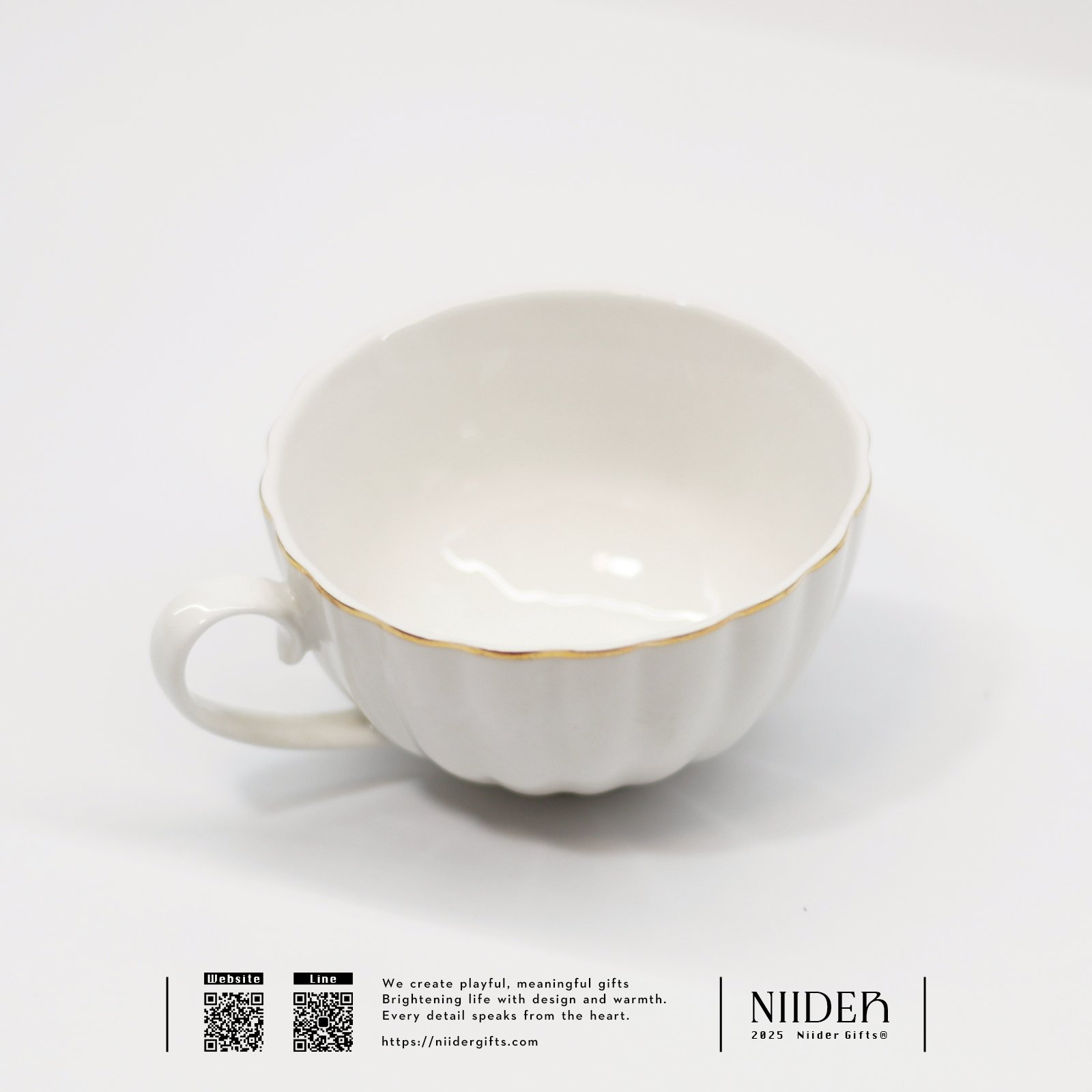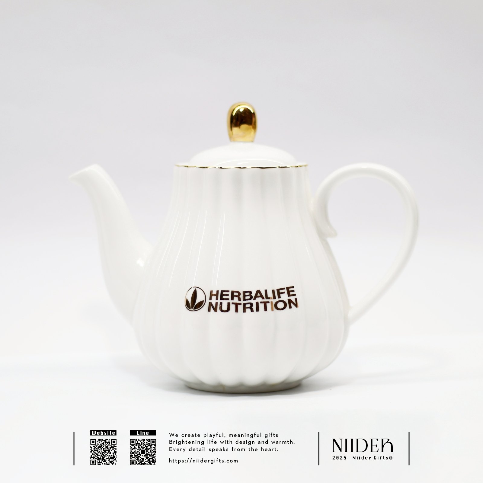 ◆ 設計特色:白瓷質地、金邊細節、圓潤壺型比例
