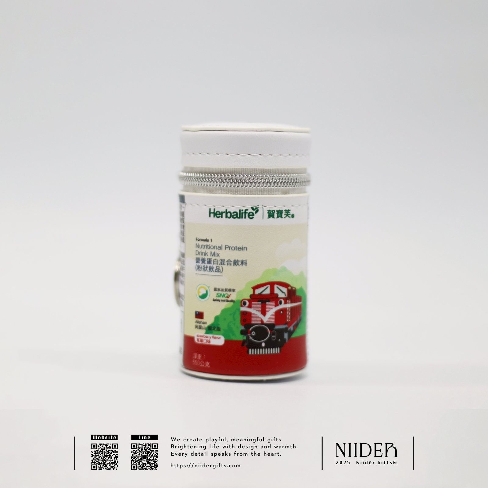 ◆ 設計特色:營養罐造型、品牌圖樣印刷、立體結構設計